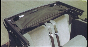 The manual hood is easily raised and lowered in seconds. Two clips on the front lip of the hood lock into the top of the windscreen surround lock the hood in the closed position. Simply unclip these and lift the hood backwards till it rests on the boot. The hood frame was manufactured by Tickford and each frame has a unique serial number. |
